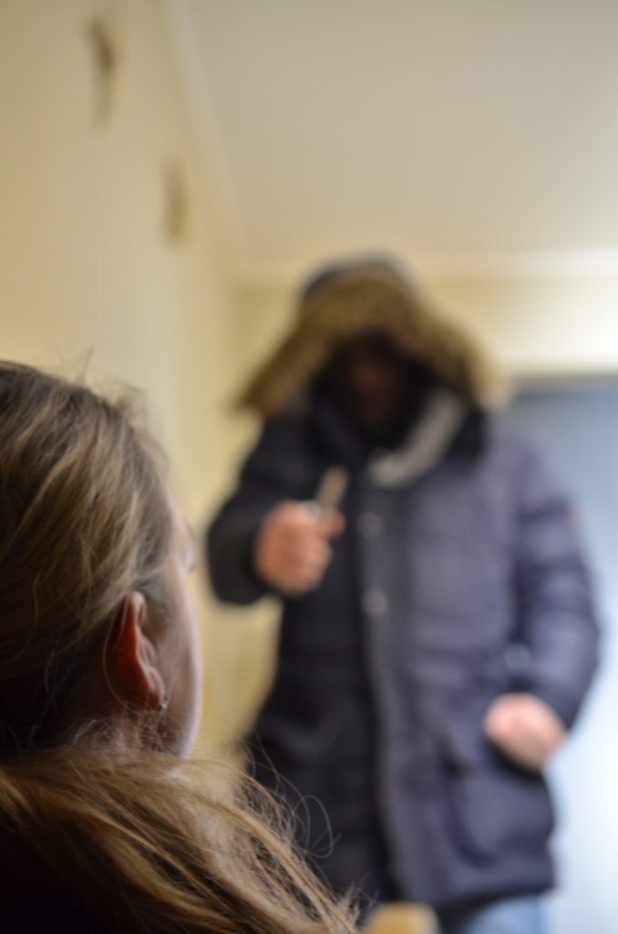 In diesem intensiven Modul steht das realitätsnahe Erleben körperlicher Selbstbehauptung im Vordergrund. Die Teilnehmer*innen setzen ihr bisher erlerntes Wissen in praxisnahen Rollenspielen um und erleben dabei authentische Bedrohungssituationen.