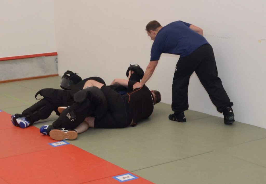 In diesem Aufbaumodul vertiefen die Teilnehmer*innen ihre Fähigkeiten im Selbstschutz durch erweiterte Schutztechniken, die einen schnellen Übergang in die eigene Initiative ermöglichen. Ziel ist es, in dynamischen Situationen handlungsfähig zu bleiben und gezielt zu reagieren. Ein besonderer Fokus liegt auf dem Umgang mit mehreren Gegnern, dem zu-Boden-bringen eines Gegners sowie der sicheren Fallschule, um Verletzungen bei Stürzen zu vermeiden. Darüber hinaus wird der Selbstschutz am Boden trainiert – eine kritische Fähigkeit in realen Bedrohungslagen. Das Modul ist praxisorientiert aufgebaut und bietet intensive Übungsphasen für eine sichere und selbstbewusste Anwendung der Techniken.
